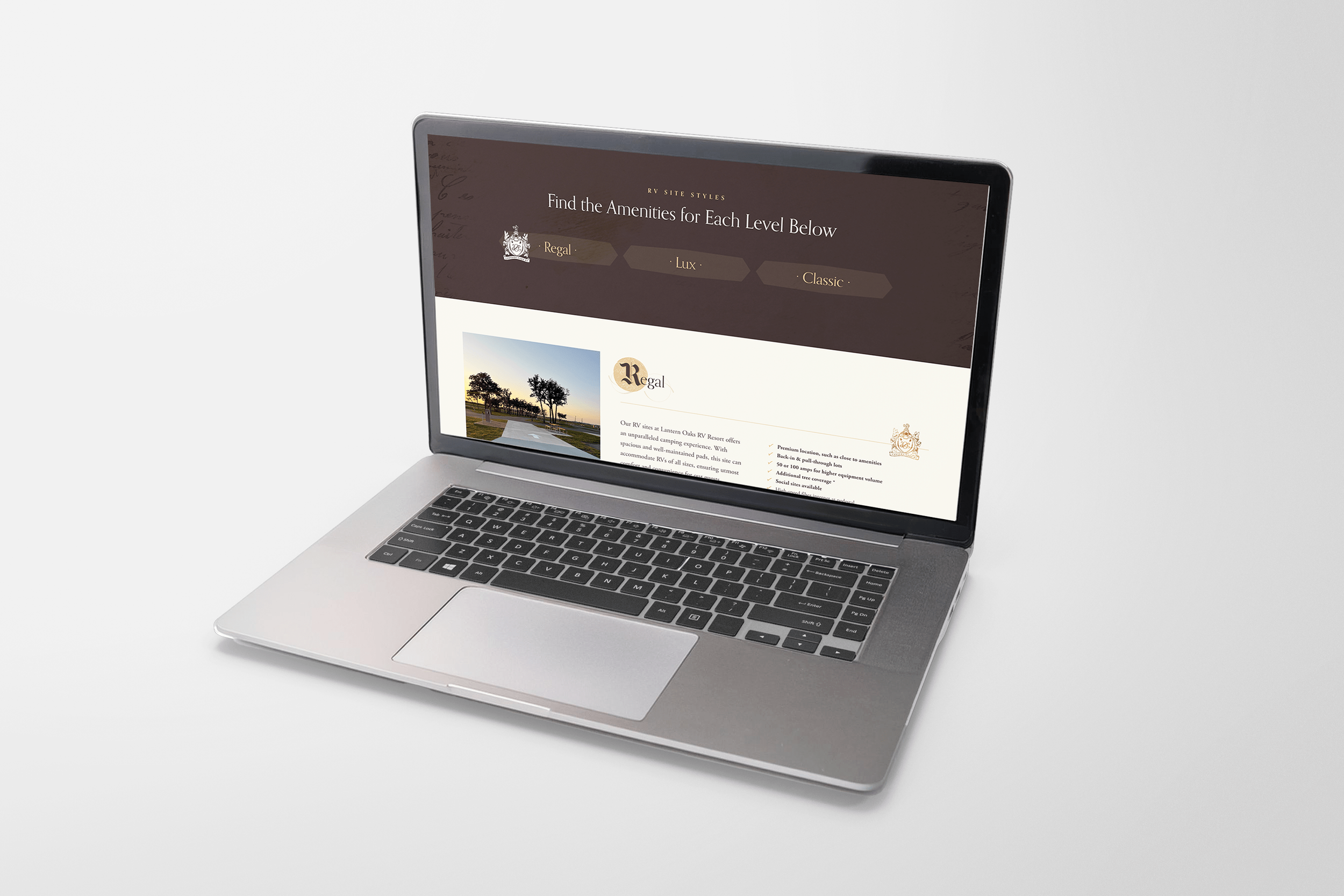 Château Burg RV Resort is a luxury RV resort in Fredericksburg, Texas, designed for adult travelers seeking a peaceful, high-end getaway. The brand needed a look and feel that captured the calm elegance of the resort, with messaging and design that conveyed both comfort and sophistication.